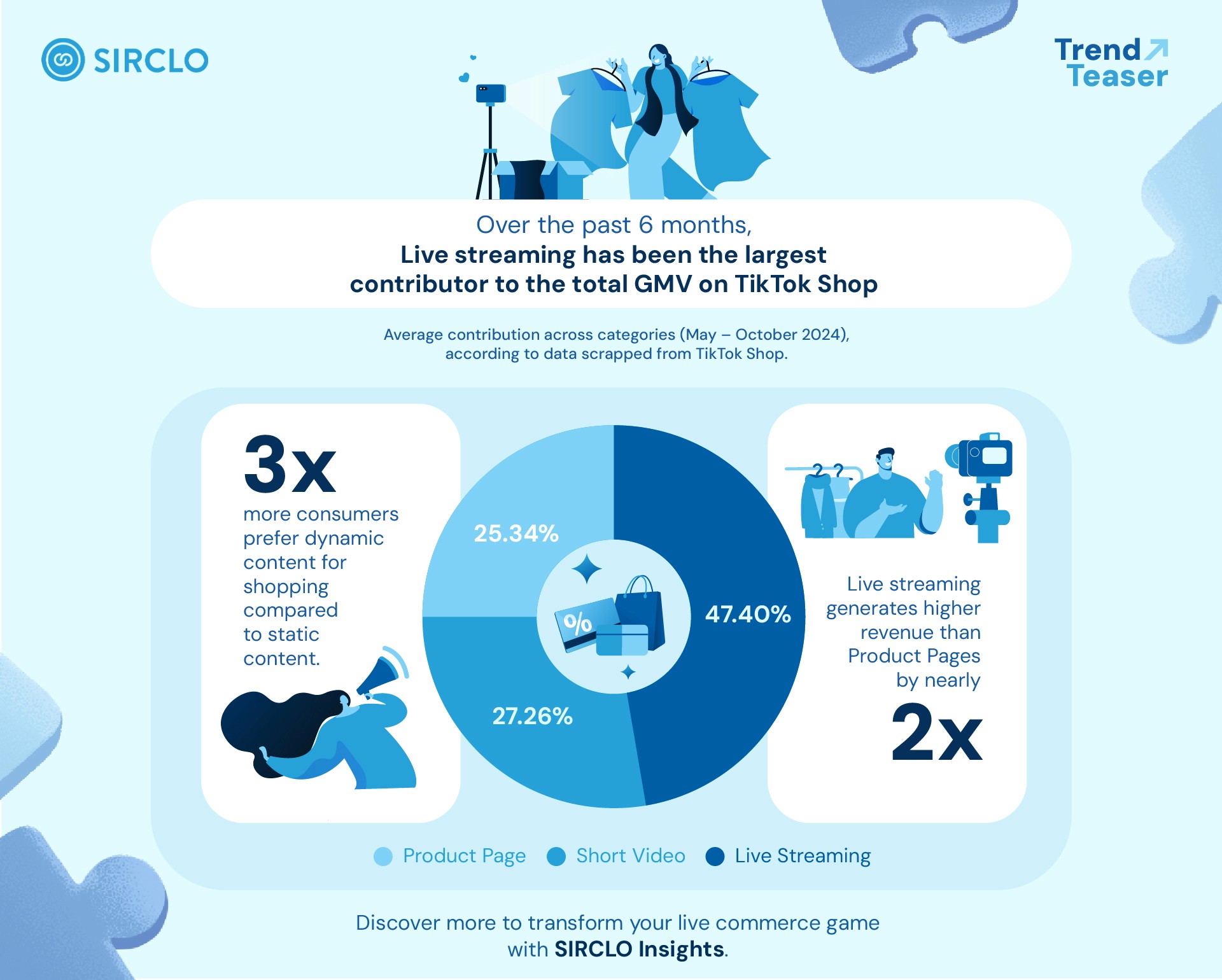 Accounting for 47.4% of TikTok Shop’s GMV, live streaming surpassed short videos (27.26%) and product pages (25.34%).